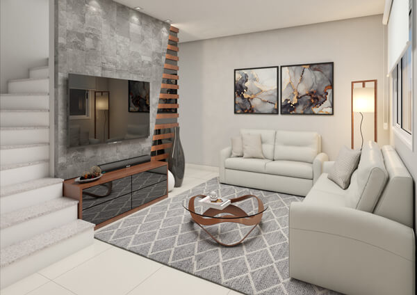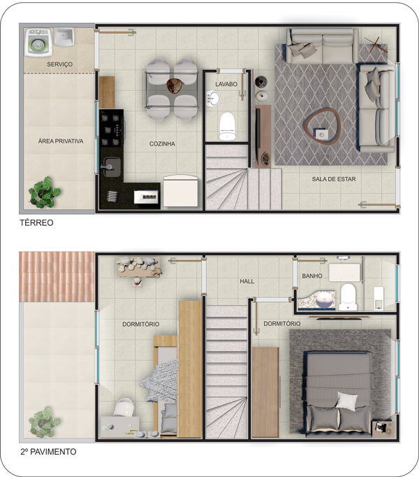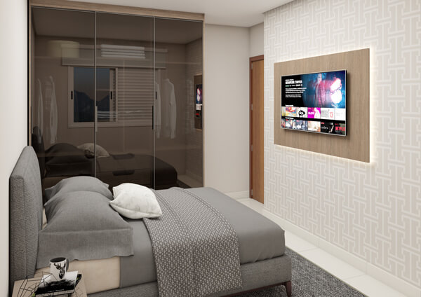 Imagens meramente ilustrativas com sugestão de decoração. Os móveis, acabamentos e objetos de decoração não fazem parte do contrato de aquisição das unidades. Consulte memorial descritivo.